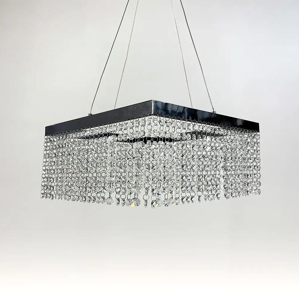 Невероятная хрустальная квадратная люстра с серебряной обводкой. Высота корпуса 35 см. Хрустальные подвесы 17 см. Данная модель люстры представлена в размерах: 30х30 и 40х40 см. Тип цоколя: 30 Серия: 2802 CH Цвет основы: Хром Размер упаковки: 47х47х12 см, 37х37х12 см Размер потолочной основы: 15х15 см Цветовая температура: 3500К Максимальная высота: 120 см Минимальная высота: 24 см Цвет хрусталя: Прозрачный Размер монтажной планки: 9 см Тип крепления: Монтажная планка Мощность (Вт): 48,5 w