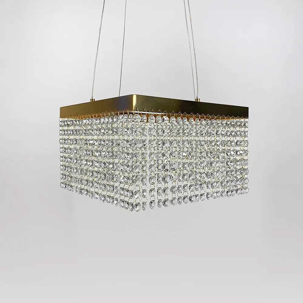 Невероятная хрустальная квадратная люстра с золотой обводкой. Высота корпуса 35 см. Хрустальные подвесы 17 см. Данная модель люстры представлена в размерах: 30х30 и 40х40 см. Тип цоколя: 40 Серия: 2802 GD Цвет основы: Золотой Размер упаковки: 47х47х12 см, 37х37х12 см Размер потолочной основы: 15х15 см Цветовая температура: 3500К Максимальная высота: 120 см Минимальная высота: 24 см Цвет хрусталя: Прозрачный Размер монтажной планки: 9 см Тип крепления: Монтажная планка Мощность (Вт): 48,5 w