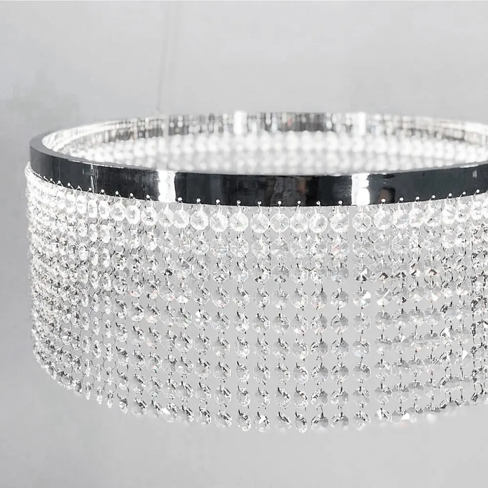 Невероятная хрустальная люстра с серебряной обводкой. Высота корпуса 35 см. Хрустальные подвесы 17 см. Данная модель люстры представлена в трех размерах, диаметром: 40, 50, 60 см. Количество источников света: 40 Серия: 2802 CH Цвет основы: Хром Цветовая температура: 2900K Максимальная высота: 120 см Минимальная высота: 24 см Тип цоколя: LED-модуль Цвет хрусталя: Прозрачный Размер монтажной планки: 11,5 см Тип крепления: Монтажная планка Мощность (Вт): 22 w w