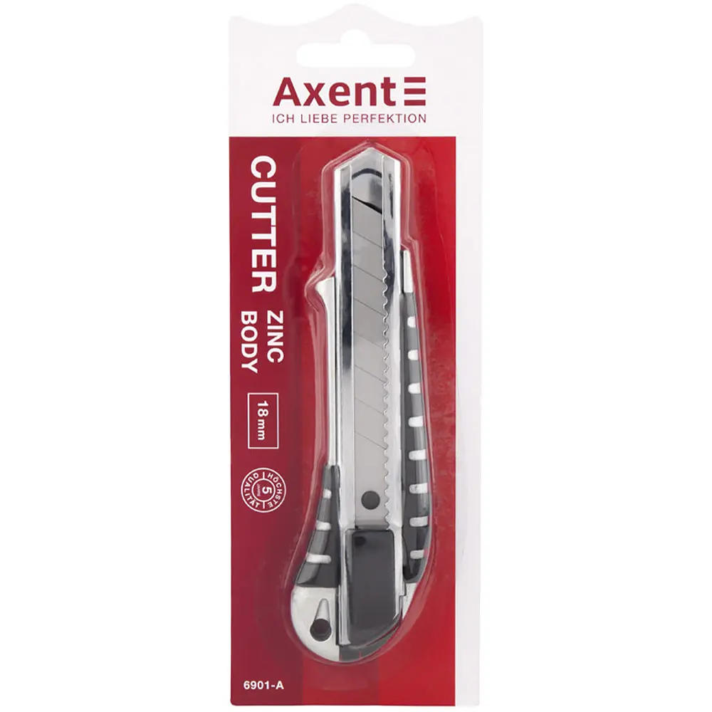 Нож канцелярский Axent сделан из цинка с резиновыми вставками. Механизм ступенчатой подачи лезвия. Фиксатор лезвия.