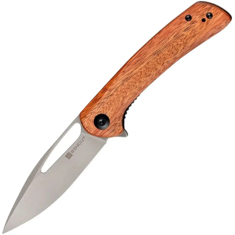 Honoris - современный карманный нож от Sencut. Открыть нож быстро и просто можно с использованием флипера или относительно большого отверстия для большого пальца. Благодаря шариковым подшипникам этот процесс необычайно плавный. Когда нож открывается, лезвие фиксируется на месте надежным замком из нержавеющей стали. Складной нож Honoris имеет современный вид благодаря сочетанию особой формы ручки и лезвия. Лезвие сделано из 9Cr18MoV, это нержавеющая сталь, которая характеризуется прочностью и долговечностью. Этот металл хорошо противодействует коррозии, демонстрирует хорошую износостойкость. По свойствам приближен к 420HC и имеет жесткость закалки к 58 HRC. Прекрасно сохраняет остроту, процесс заточки быстрый и легкий. Длина лезвия составляет 88 мм. Ручка изготовлена из дерева гибуртии. Это крепкая древесина с необычной текстурой. Дерево имеет красивый вид, достаточно лёгкое. Древесина без особого труда может принять практически любую художественную форму благодаря своей текстуре. Такой натуральный материал на протяжении веков использовался как материал для ручек. Особенности: стальное лезвие с удлиненным отверстием для большого пальца; легкое открытие ножа с помощью флипера;