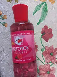 Жидкость для снятия лака Ноготок Classic с экстрактом розы позволяет мягко и бережно растворять любой лак и деликатно его удалить без необходимости оттирать кутикулу от въевшегося пигмента.