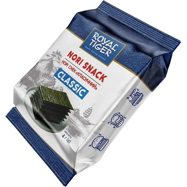 Нори Снек - это идеальный выбор для тех, кто ищет необычный и полезный перекус. Эти уникальные снеки созданы из тщательно подобранных листов норы, обжаренных до идеальной хрустящей текстуры. Снек удивит вас своим насыщенным морским вкусом, идеально сочетающимся с легкими солоноватыми нотками.