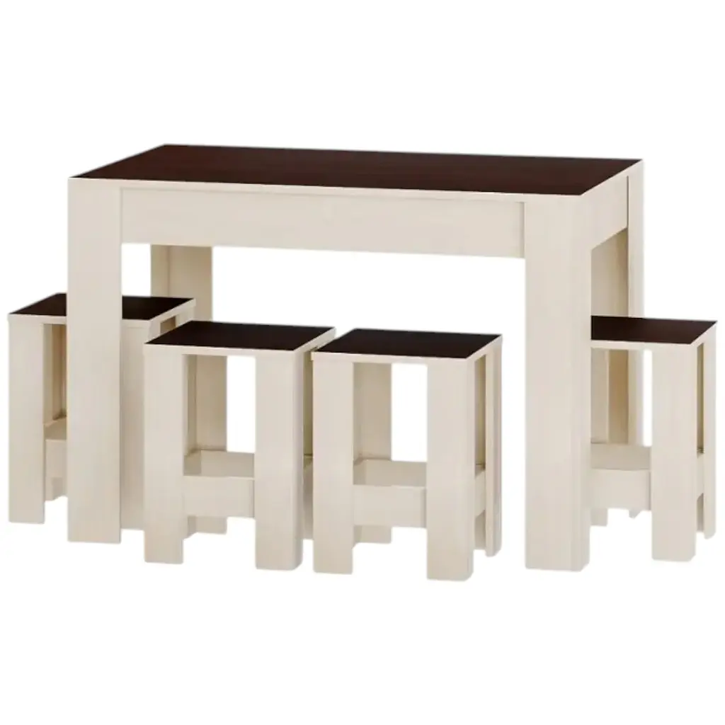 Представляем вам обеденный комплект от фабрики Эверест, включающий обеденный стол модели СТО-1 и четыре табурета Т-1 в том же стильном сочетании оттенков. Этот комплект идеально подойдет для вашей кухни или столовой, придавая ей элегантность, стиль и уют.
