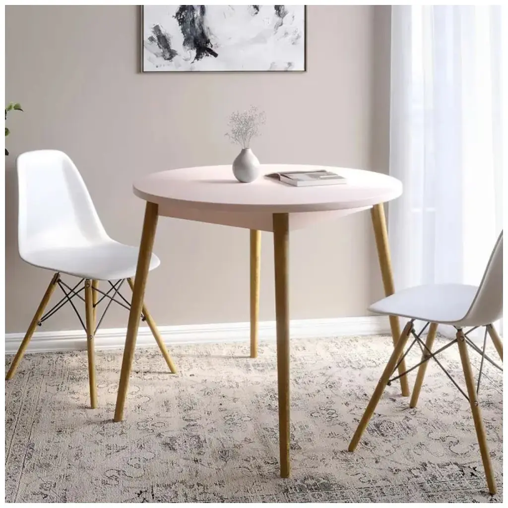 Стол изготовлен из высококачественной ЛДСП Swiss Krono, что обеспечивает долговечность, стойкость к царапинам и легкость в уходе. Его деревянные ножки придают конструкции натуральной красоты и крепости, подчеркивая элегантность и современный стиль изделия. Оттенок столешницы придает легкость и универсальность, гармонично вписываясь в любой интерьер.
