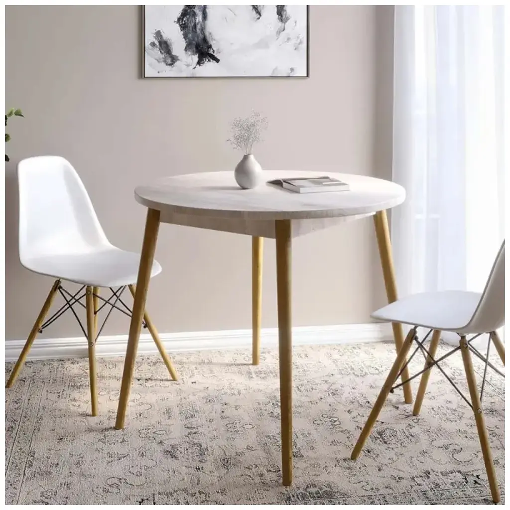 Стол изготовлен из высококачественной ЛДСП Swiss Krono, что обеспечивает долговечность, стойкость к царапинам и легкость в уходе. Его деревянные ножки придают конструкции натуральной красоты и крепости, подчеркивая элегантность и современный стиль изделия. Оттенок столешницы придает легкость и универсальность, гармонично вписываясь в любой интерьер.