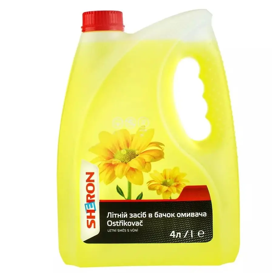 Омыватель стекла летний Sheron - готовый к использованию продукт, отлично справляющийся со всеми распространенными загрязнениями ветрового стекла, включая бензомасляную пленку, сок деревьев и следы насекомых.