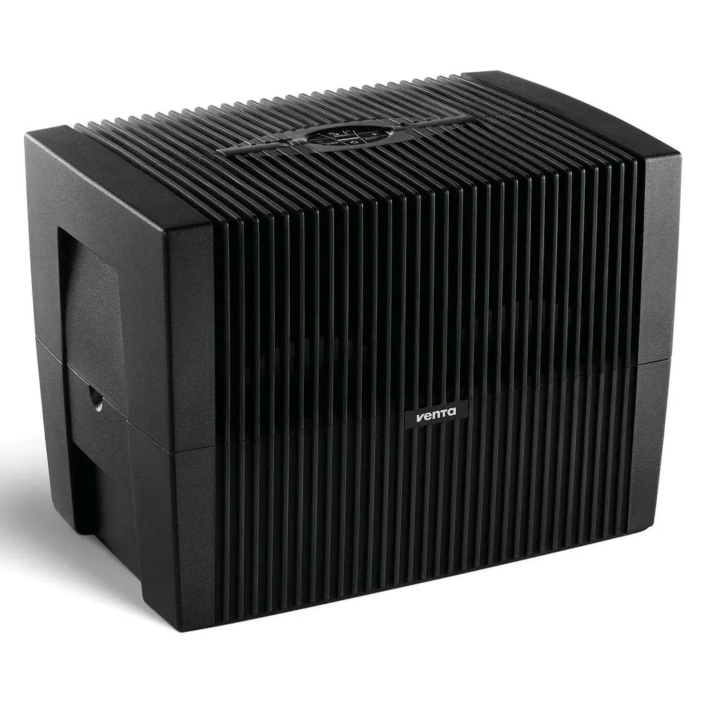 ВоздухоочистительVenta LW45 Comfort Plus Blackс функцией увлажнения подходит для помещений площадью до 60 м². Он оснащен технологией VentWave для повышения эффективности испарения и цифровым гигрометром. Он снижает содержание вредных веществ в воздухе при влажности 40–60%.