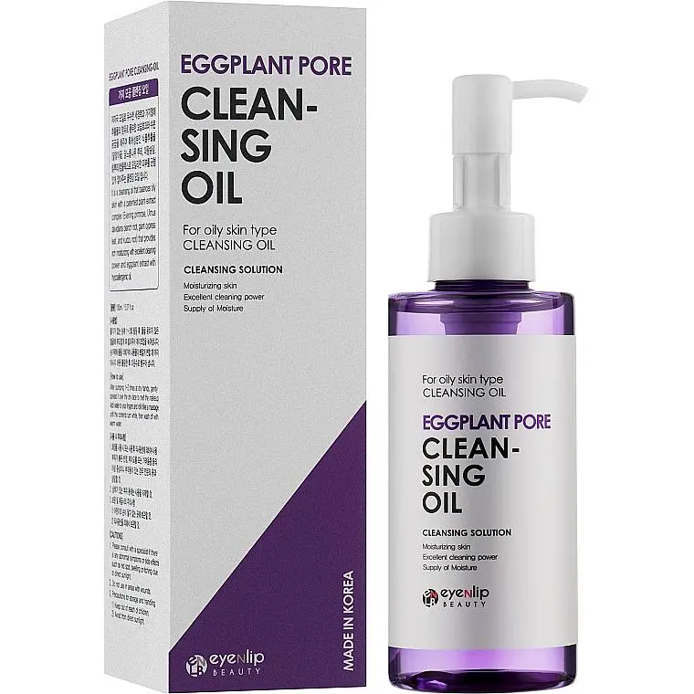 Южнокорейское Eggplant pore cleansing oil для очищения от стойкого макияжа BB-, CC-кремов. Идеально подходит для ухода за комбинированной, жирной, увядающей, воспаленной, проблемной, зрелой кожей лица. Оказывает успокаивающее, противовоспалительное, ранозаживляющее действия.