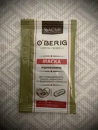 Замовляючи на Маудау додала до покупки ще й Олію-маску O'Berig Яєчно-пантенолова з 5 оліями, для пошкодженного, сухого, пористого та фарбованого волосся. Скористалась після того як вимила волосся відповідним Олією-шампунем O'BERIG Яєчно-пантеноловий з 5 оліями для пошкодженного сухого пористого та фарбованого волосся. Має білий колір. Приємний насичений аромат. Як і шампуні відчувається наявність олій що живлять волосся. Додатково тонує фарбоване волосся. Гарно олія-маска. Рекомендую 👍