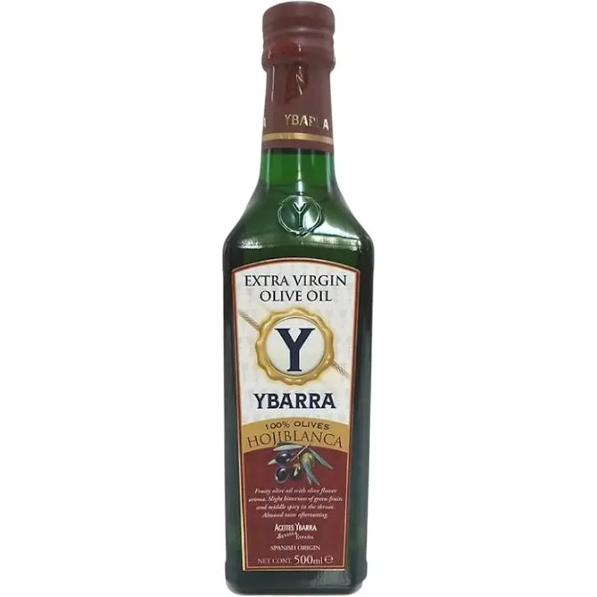 Коричнева етикетка в лінійці олій Ybarra відповідає моносортовій олії Extra Virgin Hojiblanca. Головна відмінність від інших видів полягає у використанні конкретного сорту оливок — Хохібланка, що визначає унікальний смаковий профіль продукту. Ця олія має збалансований смак із характерною гірчинкою та свіжим ароматом. Купила її вперше і задоволена якістю: вона підходить для різноманітних салатів і є джерелом корисних жирів.