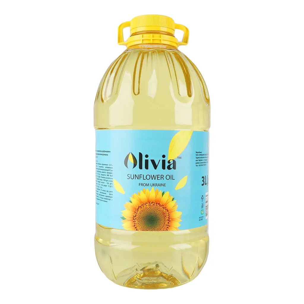 Масло подсолнечное Олівія рафинированное вымороженное подходит для приготовления различных холодных и горячих блюд.