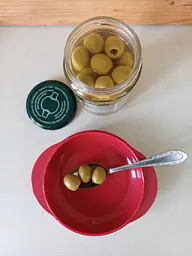 Зелені оливки без кісточок мають ніжний солонуватий смак. Відсутні зайві підсилювачі смаку та аромату. Тому оливки зберегли свої корисні властивості. Смачно їсти їх як самостійну страву, або додавати в салати, піццу. Розмір середній, 3 штуки на чайну ложку.