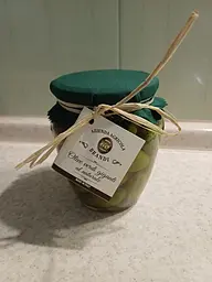 Справді гігантські оливки - кожна приблизно з чайну ложку. Мені дуже сподобався такий великий розмір: зручно їсти просто як закуску, без додавання до страв. Смак насичений, м’яка текстура. Банка гарно оформлена - у «домашньому», сільському стилі, тож продукт можна навіть подарувати як невеликий презент. Ціна дещо вища за середню, але й об’єм немалий, тому виглядає виправдано. Загалом - якісні, великі та смачні оливки, які приємно мати на столі й не соромно подарувати.