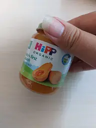 Ми почали давати нашому малюкові овочеве пюре HiPP «Перший гарбуз» як перший прикорм і залишилися дуже задоволені. Пюре має максимально простий і натуральний склад — лише органічний гарбуз і трохи води для консистенції. Немає цукру, солі чи будь-яких додаткових добавок, що для нас було важливо, адже це перші спроби нової їжі. Консистенція пюре дуже ніжна та однорідна, без грудочок, тому дитині легко ковтати і знайомитися з новим смаком. Сам гарбуз має природну солодкість, але смак м’який і приємний, дитина з’їла першу порцію із задоволенням. Ми також оцінили зручну баночку: скло дозволяє бачити об’єм, кришка герметична і легко відкривається. Якщо залишаєш частину пюре, воно добре зберігається в холодильнику ще добу без зміни смаку чи запаху.
