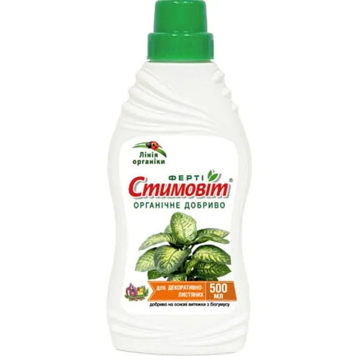 Органо-минеральное Удобрение Для декоративно-лиственных растений Стимовит 0.5 л предназначен для подкормки вышеперечисленных растений один раз в две недели.