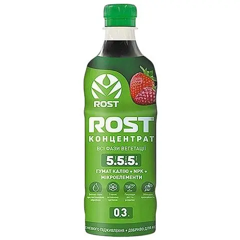Органо-минеральное удобрение Rost Концентрат - это органо-минеральное удобрение на основе концентрированного гумата калия. Содержит комплекс макро-, мезо- и микроэлементов. Оно обеспечивает растения необходимыми элементами питания; мобилизует иммунную систему растений; улучшает синтез сахаров, аминокислот, витаминов в растении; усиливает поглощение воды и кислорода, в результате ускоряет деление клеток; интенсифицирует обменные процессы; повышает поступление питательных элементов в растение; ускоряет синтез нуклеиновых кислот и белка; активирует белковый и углеводный обмен веществ, увеличивает проницаемость клеточной мембраны; облегчает транспортировку питательных веществ внутрь клетки.