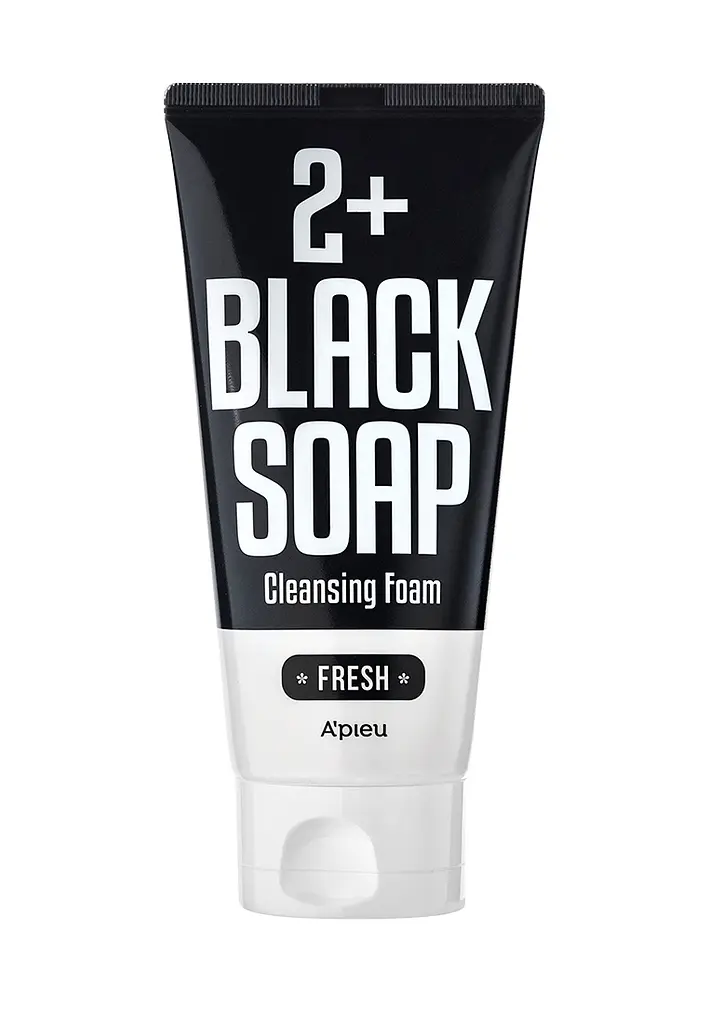 Освежающая пена для умывания Apieu (Апье) 2+ Black Soap Fresh Cleansing Foam с кремовой текстурой черного цвета и богатым комплексом веществ помогает ухаживать за жирной и комбинированной кожей лица, очищает и сужает поры без пересушивания, регулирует выработку кожного жира и делает кожу матовой и свежей.