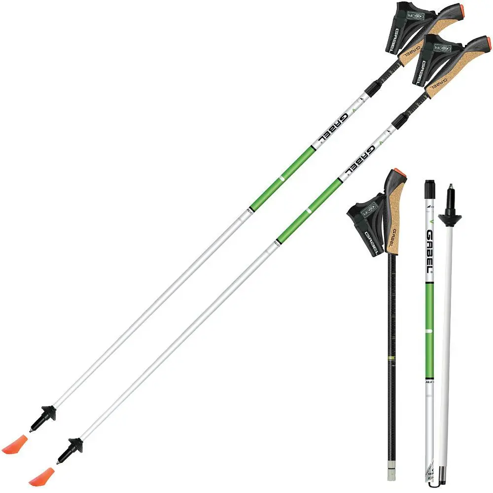 Трехсекционные палки имеют верхнюю (более удобную) телескопическую систему регулировки высоты в пределах от 105 до 130 см и систему складывания Twist Lock, благодаря чему в транспортном положении имеют длину всего 52 см. Рукоятка имеет двухслойную накладку из кожи, препятствующую потоотделению, и оснащена системой быстрого отстегивания ремешка. Необходимый наклон рукоятки, эффективный крой ремешка-перчатки и форма сапожка способствуют формированию правильной техники скандинавской ходьбы. Все палки Gabel имеют расширенную двухлетнюю гарантию.