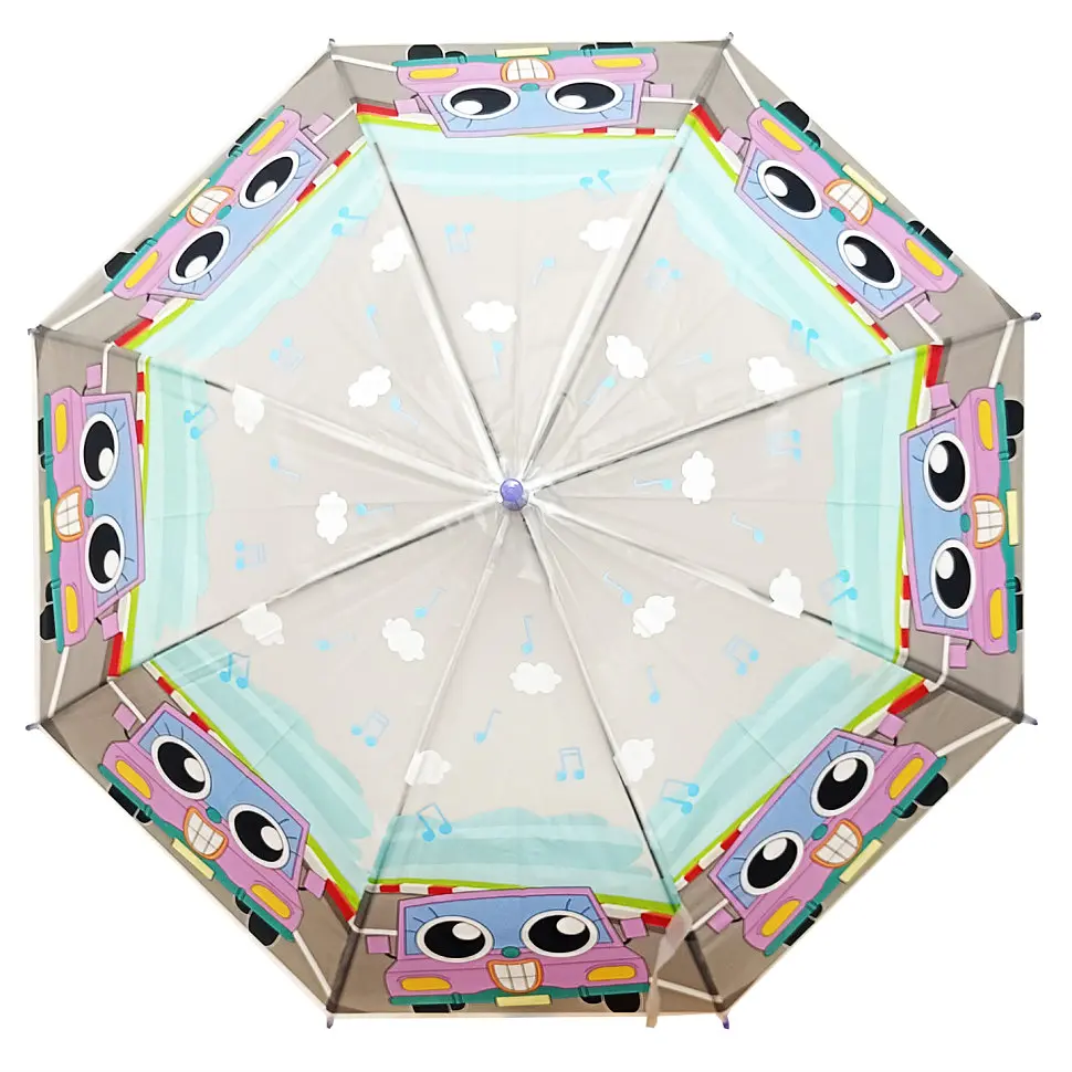 Зонтик – трость, длина рукояти 60 см. Количество спиц 8 шт, длина одной спицы 45 см. Диаметр в раскрытом виде 83 см. Ручка пластиковая, крюк. Грубый, прозрачный полимерный материал. В комплекте свисток