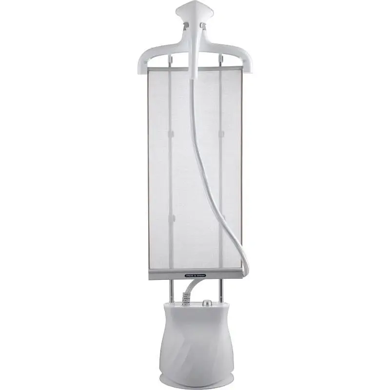 Отпариватель, мощность 2200 Вт, объем резервуара для воды 1500 мл, регулятор подачи пара, программы: лен/хлопок/шерсть/смешанные ткани/шелк/синтетика, вертикальное/горизонтальное отпаривание, вращение шнура, автоотключение, мерный стакан, перчатка, насадка-щетка
