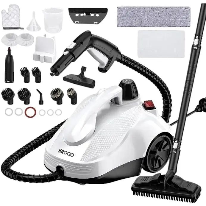 - Аксессуары: в комплекте вы получаете набор из 23 аксессуаров, позволяющих очистить пол, плитку, окна, обивку, ковры, мебель и даже духовку. Подходит для удаления грязи из автомобиля, чистки матрасов и обивки диванов.