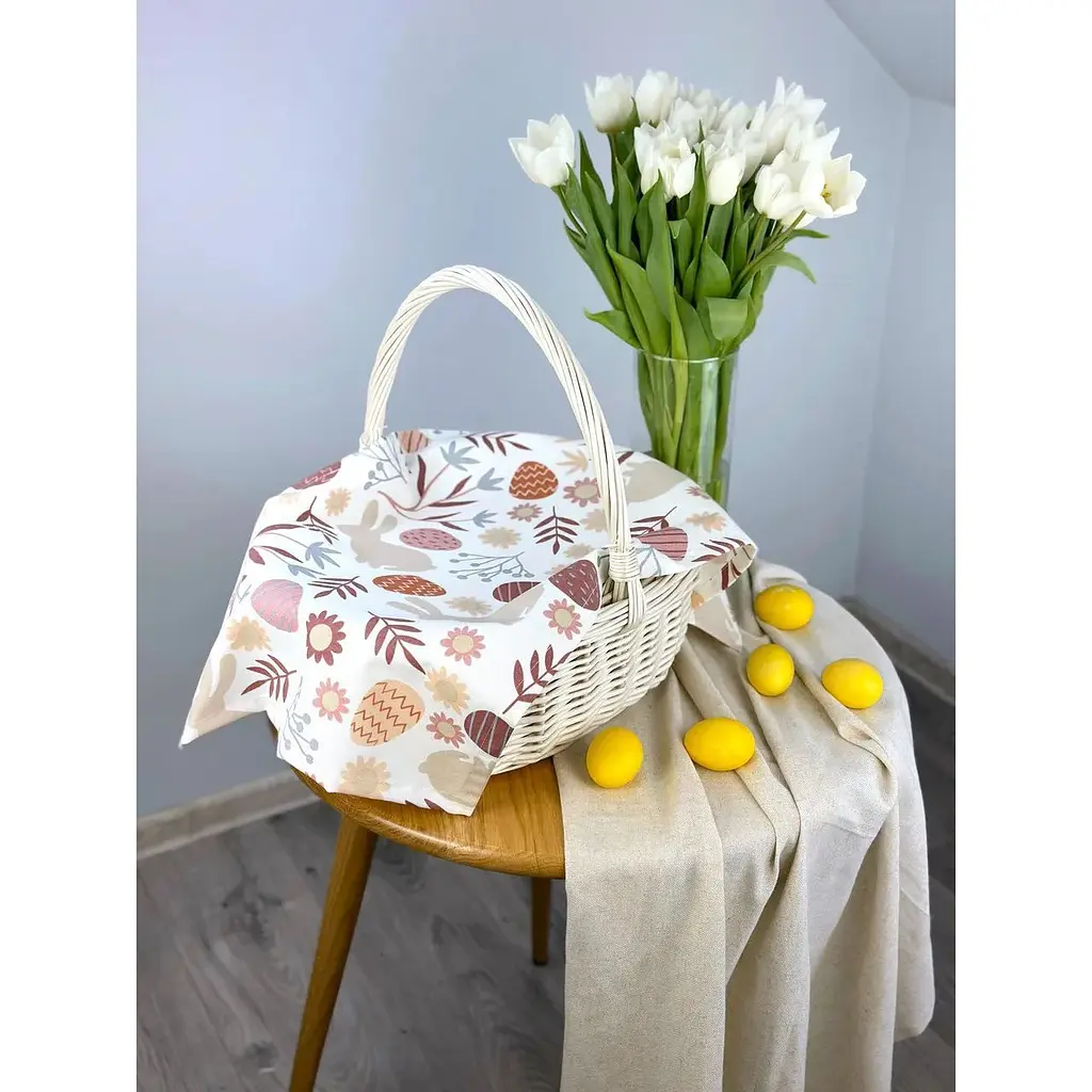 Пасхальное полотенце водоотталкивающее для корзины - практичный и одновременно декоративный аксессуар для праздничного оформления пасхальной корзины. Благодаря специальному водоотталкивающему покрытию полотенце надежно защищает пасхальные продукты от влаги, росы или случайных брызг во время освящения и переноски корзины.