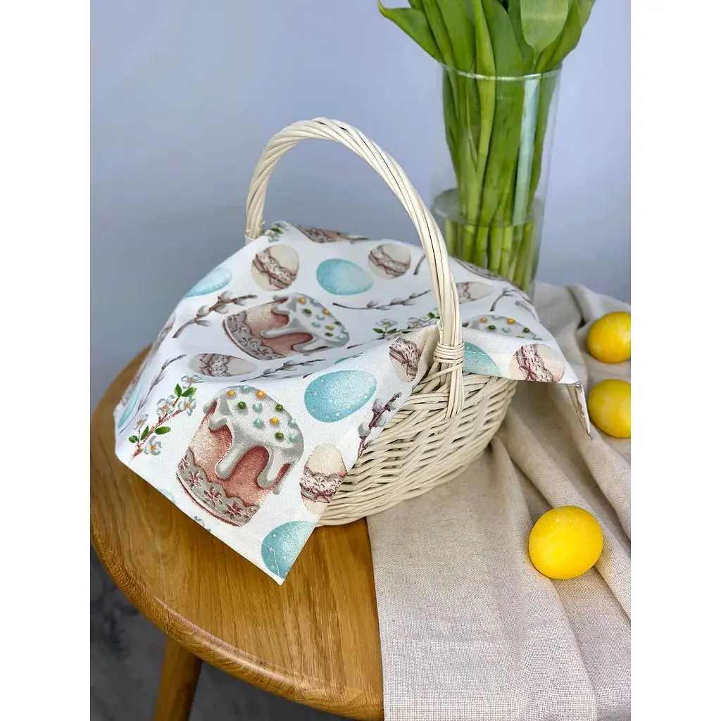 Пасхальное полотенце водоотталкивающее для корзины - практичный и одновременно декоративный аксессуар для праздничного оформления пасхальной корзины. Благодаря специальному водоотталкивающему покрытию полотенце надежно защищает пасхальные продукты от влаги, росы или случайных брызг во время освящения и переноски корзины.