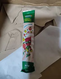 Пастила смачна та з хорошим складом, але більше відчувається саме яблуко, тоді як персик майже губиться. Однак загалом перекус приємний і легкий, добре підходить як корисна альтернатива солодощам.