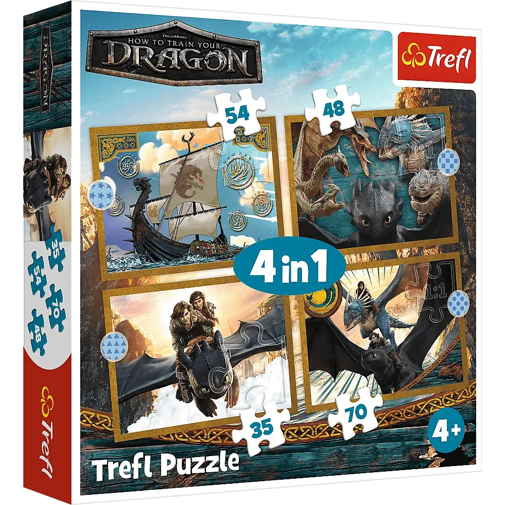 Пазл 4 в 1 "Как приручить дракона. Дни Дракона" — четыре отдельные картинки для поклонников приключений