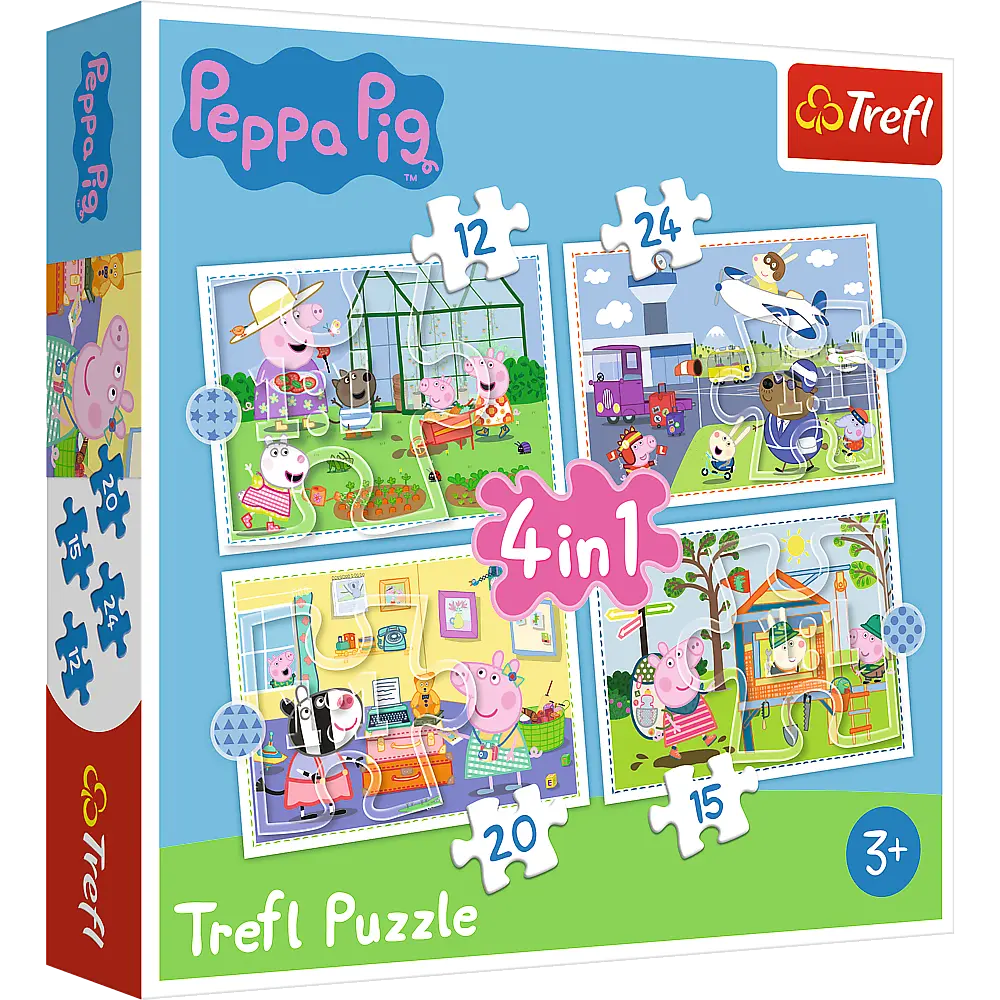 Не один, не два, а четыре пазла в одной коробке – настоящий праздник для любителей пазлов! После сборки мы получим четыре разных по размеру картинки со Свинкой Пеппой. Различное количество элементов позволяет играть как младшим, так и старшим детям. Своевременное размещение, сравнение изображений, поиск отличий и сходств могут быть дополнительным развлечением. Пазлы для детей! Для изготовления пазла мы использовали экологические материалы и льняную бумагу, которая исключает отражение света, что гарантирует безопасность и веселье. Содержимое коробки: 1 пазл из 12 деталей1 пазл из 15 деталей1 пазл из 20 деталей1 пазл из 24 деталей Рекомендовано для детей от 3-х лет. Упаковка: коробкаРазмер упаковки: 28 х 28 х 6 см * Характеристики и комплектация товара могут изменяться производителем без уведомления