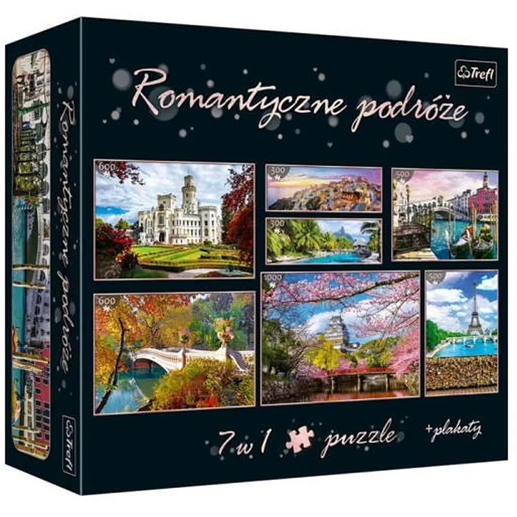 Пазл Trefl 7 в 1 Романтическое путешествие, 2х300 эл., 2х500 эл., 2х600 эл., 1000 эл. (93114)