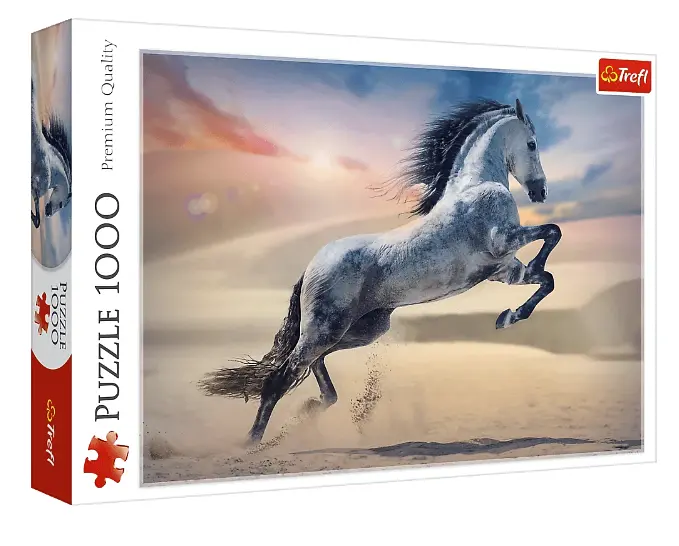 Открывайте коробку и отправляйтесь в историческое путешествие по диким просторам природы! Пазлы "Величественный конь" на 1000 элементов - это захватывающий пейзаж грациозного животного, бегущего по пустыне на фоне теплых лучей заката. Этот набор станет идеальным подарком для любителей природы и животных, даря удовольствие от сборки детализированного и величественного изображения силы и свободы.