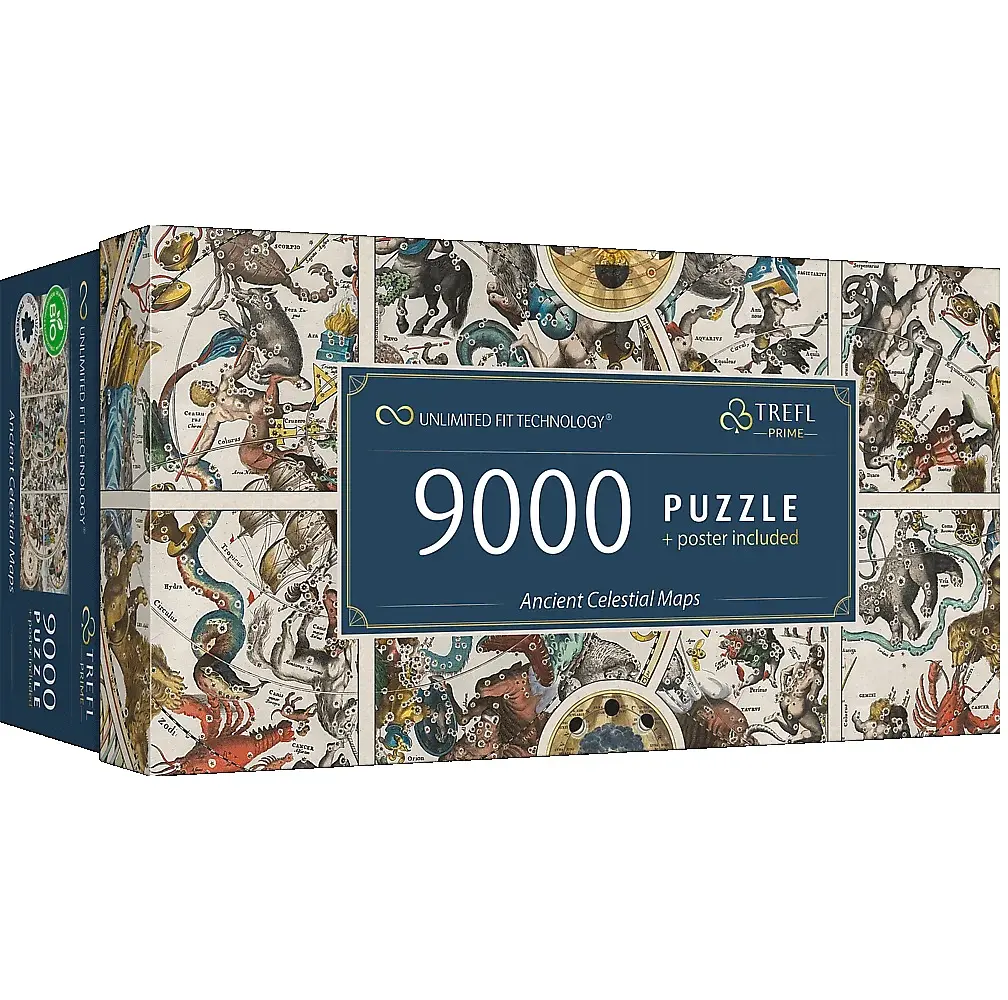 Откройте для себя пазл Trefl Prime UFT-Ancient Celestial Maps, состоящий из впечатляющих 9000 частей! Создайте старинную карту космоса, полную знаков зодиака и созвездий. Чем они выделяются? - самый толстый картонный пазл на рынке, - особенная неправильная форма элементов, - пазл можно двигать и вращать, не боясь развалиться. Вы можете объединить 6 пазлов (по 1500 элементов каждый), чтобы создать гигантское изображение, предложенное на плакате, или дать волю своему воображению и создать собственную композицию! Пазлы отлично тренируют память, развивают ручные возможности, тренируют концентрацию, терпение и проницательность. Уникальный подарок для любителей головоломок, взрослых и детей в возрасте от 12 лет. Общий размер головоломки, соединенной предложенным нами способом, составляет 1985,6 x 928 мм*. *Панели/отдельные пазлы можно также соединять любым способом благодаря технологии UFT. Индивидуальный способ соединения определяет разный размер всей композиции.