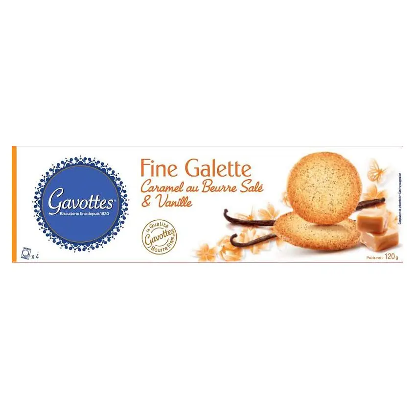 Печенье Gavоttes с соленой карамелью и ванилью подарит удовольствие и наслаждение восхитительным вкусом. Хрупкая структура делает угощение легким, воздушным, рассыпчатым и в то же время потрясающе нежным! Главная особенность печенья заключается в том, что оно достаточно долго не черствеет.