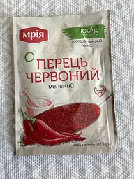 Перець червоний мелений "Мрія" 20 г — ароматна та гостра спеція, що додає стравам яскравого смаку. Якісний помел, зручна упаковка. Ідеально для м’яса, супів та соусів.