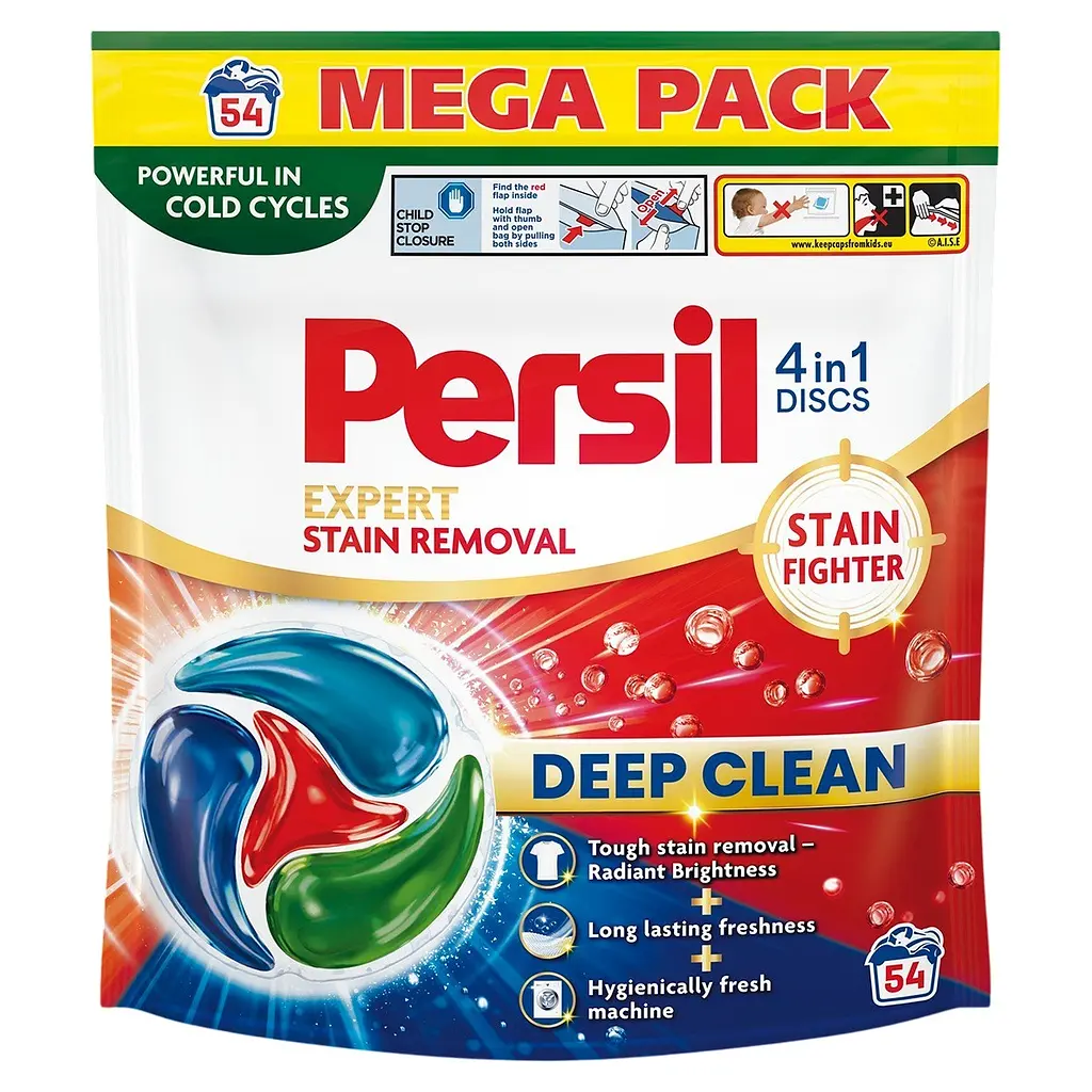 Диски для стирки Persil 4in1 Expert Stain Removal Deep Clean - эффективное и удобное средство для борьбы с устойчивыми загрязнениями. Благодаря инновационной формуле, диски обеспечивают идеальную чистоту, бережную очистку тканей и свежесть после каждой стирки.