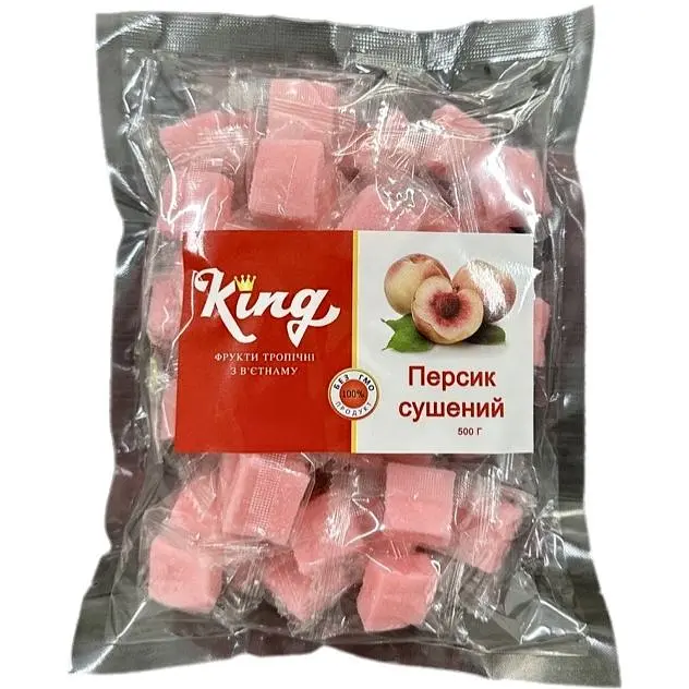 Персик King сушеный - это отличный выбор для любителей сладостей, которые ценят яркий вкус и натуральность продуктов. Изготавливается с использованием высококачественных ингредиентов, обеспечивающих неповторимый фруктовый аромат и наслаждение каждым кусочком. Прекрасно подходит как для ежедневного перекуса, так и для праздничного стола, становясь любимым лакомством для всей семьи. Его можно употреблять в любое время дня.