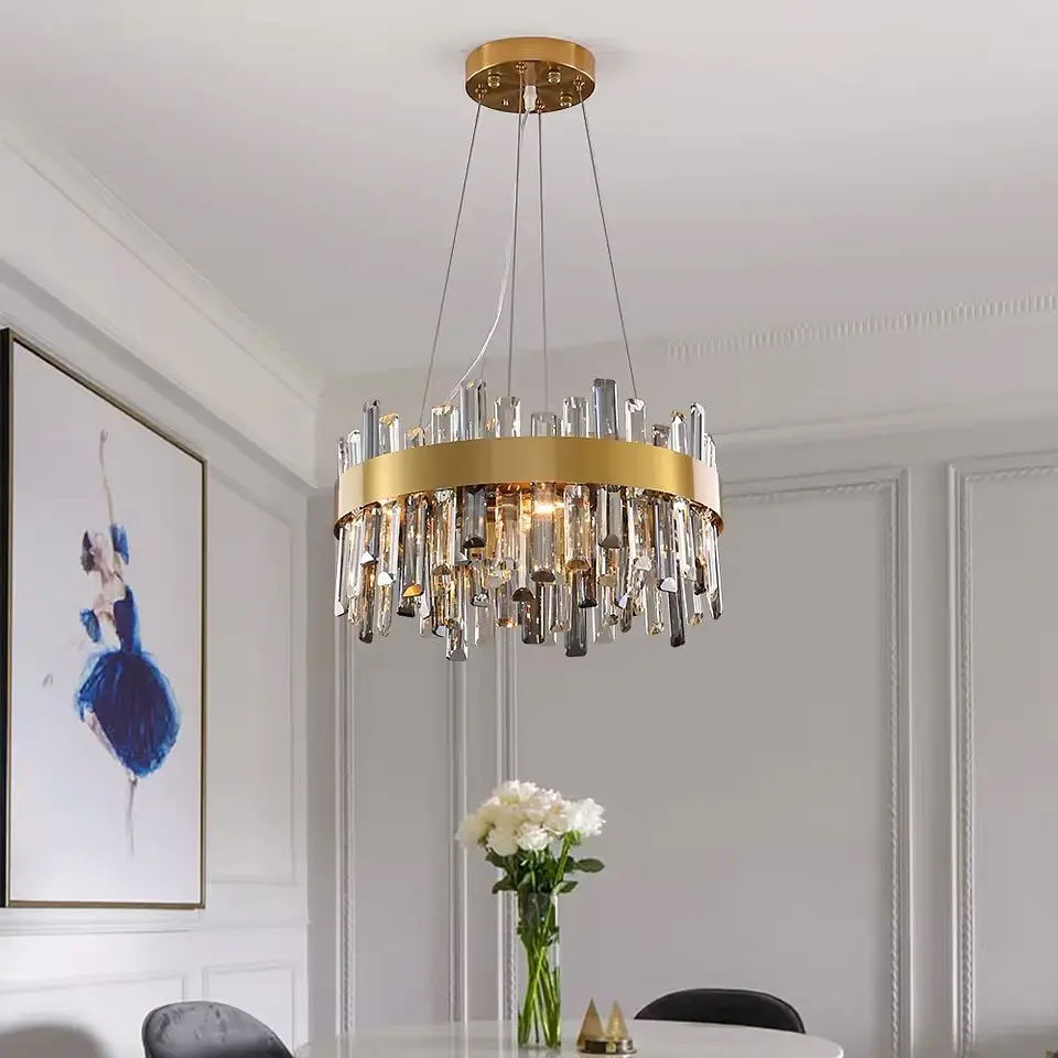 Подвесная люстра в латунном корпусе имеет уникальный дизайн с декоративными хрустальными камнями двух цветов, прозрачный и графит. Люстра оснащена встроенными светодиодами, имеющими три режима освещения. Данная модель доступна в круглом кольцевом корпусе (в двух диаметрах: 60 см (мощность 86 Вт, в том числе 43 Вт в теплом и холодном режиме) и 80 см) и в удлиненном овальном корпусе (длиной 80 и 100 см). Эта люстра идеально подходит для гостиных, столовых или современных офисных помещений, придавая им стиль и функциональность. Цвет основы: 60 Тип помещения: Люстры для гостиной (в зал) Форма_изделия: Круглая Серия: MJ 210 Диаметр кольца: 60 см Размер потолочной основы: 15х4 см Цветовая температура: 3000K,4500K,6500K Максимальная высота: 90 см Минимальная высота: 30 см Тип цоколя: LED-модуль Материал основы: Металллл Цвет хрусталя: Прозрачный, Графит Размер монтажной планки: 12 см Тип крепления: Монтажная планка Мощность (Вт): 86