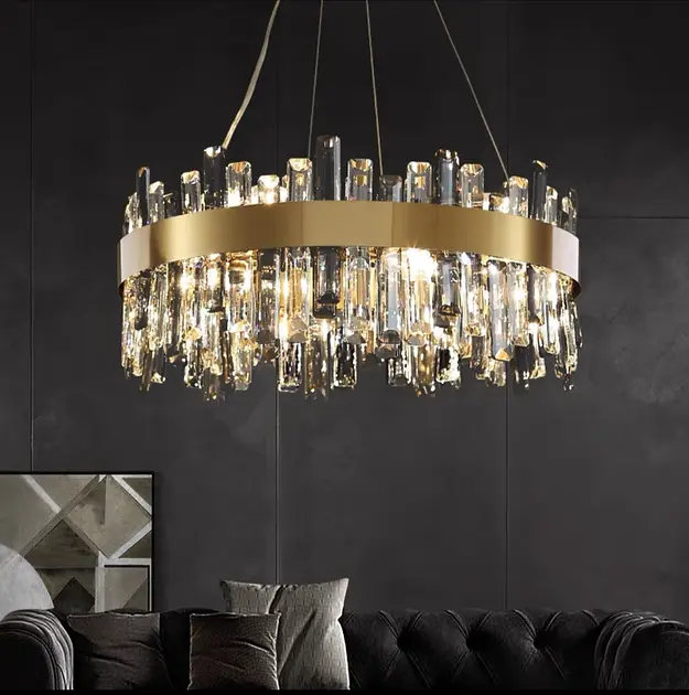 Подвесная люстра в латунном корпусе имеет уникальный дизайн с декоративными хрустальными камнями двух цветов, прозрачный и графит. Они крепятся к металлическому кольцу, создавая привлекательную и современную эстетику дизайна. Люстра оснащена встроенными светодиодами, имеющими три режима освещения. Высоту светильника можно регулировать от 30 до 90 см в зависимости от потребности помещения. Данная модель доступна в круглом кольцевом корпусе (в двух диаметрах: 60 см (мощность 86 Вт, в том числе 43 Вт в теплом и холодном режиме) и 80 см) и в удлиненном овальном корпусе (длиной 80 и 100 см). Эта люстра идеально подходит для гостиных, столовых или современных офисных помещений, придавая им стиль и функциональность. Количество источников света: 80 Тип помещения: Люстры для гостиной (в зал) Форма_изделия: Круглая Серия: MJ 210 Цвет основы: Латунь Диаметр кольца: 80 см Размер потолочной основы: 15х4 см Цветовая температура: 3000K,4500K,6500K Максимальная высота: 90 см Минимальная высота: 30 см Тип цоколя: LED-модуль Материал основы: Металллл Цвет хрусталя: Прозрачный, Графит Размер монтажной планки: 12 см Тип крепления: Монтажная планка Мощность (Вт): 115 w