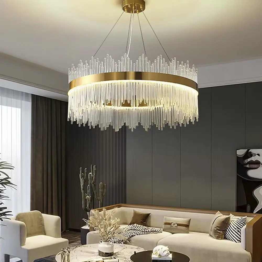 Роскошная серия люстр COLISEUM в латунном корпусе со стеклянными прозрачными трубочками представлена в 4-х диаметрах: 50, 60, 80 и 100 см. Люстры оснащены встроенными светодиодами, которые поддерживают три режима освещения: теплый, нейтральный и холодный свет. Это позволяет легко адаптировать освещение к вашим потребностям и настроению. Также есть возможность подключить эту модель люстры на 2 выключателя. Благодаря возможности регулировки высоты до 170 см модель легко адаптируется к различным помещениям и высоте потолка, создавая стильный и функциональный акцент в вашем пространстве. Эта люстра имеет два варианта сборки стеклянных трубочек, что меняет ее вид. Плавный каскад - равномерное расположение трубочек придает строгость и минималистическую элегантность. Динамичное размещение - трубочки хаотично сгруппированы на разных уровнях, что создает более живой и экспрессивный вид. Серия невероятно стильных люстр COLISEUM в латунном металлическом корпусе со стеклянными прозрачными трубочками представлена в следующих вариантах: круглый кольцевой корпус: 50, 60, 80 и 100 см удлиненный овальный корпус: 80 и 100 см бра (настенные светильники) Тип цоколя: 45 Тип помещения: Люстры для гостиной (в зал) Форма_изделия: Кольцо Серия: J 881 AB Цвет основы: Латунь Диаметр кольца: 100 см Размер потолочной основы: 15х4 см Цветовая температура: 3000–4500–6000К Максимальная высота: 170 см Минимальная высота: 65 см Материал основания: Металл Размер монтажной планки: 11х11 см Тип крепления: Крестовина Мощность (Вт): 38 Тип выключателя: Нет