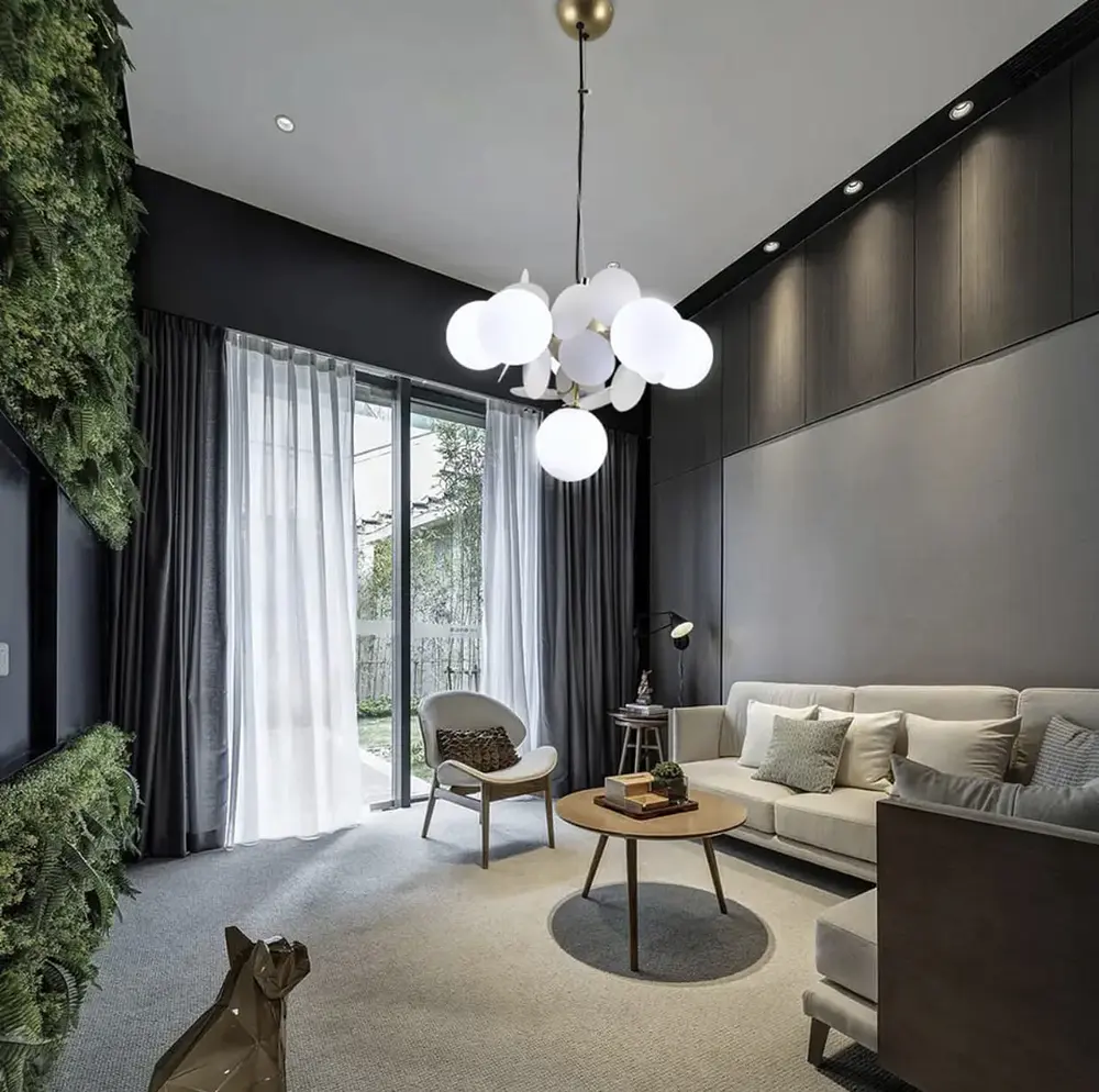 Люстра на 5 плафонов с пластинами белого или серого цвета. Идеальный вариант для детской спальни Количество источников света: 36 Серия: 134 Цвет основы: Золотой Цвет плафона: Белый Максимальная высота: 170 см Минимальная высота: 30 см Тип цоколя: G9 Размер монтажной планки: 10 см Тип крепления: Монтажная планка