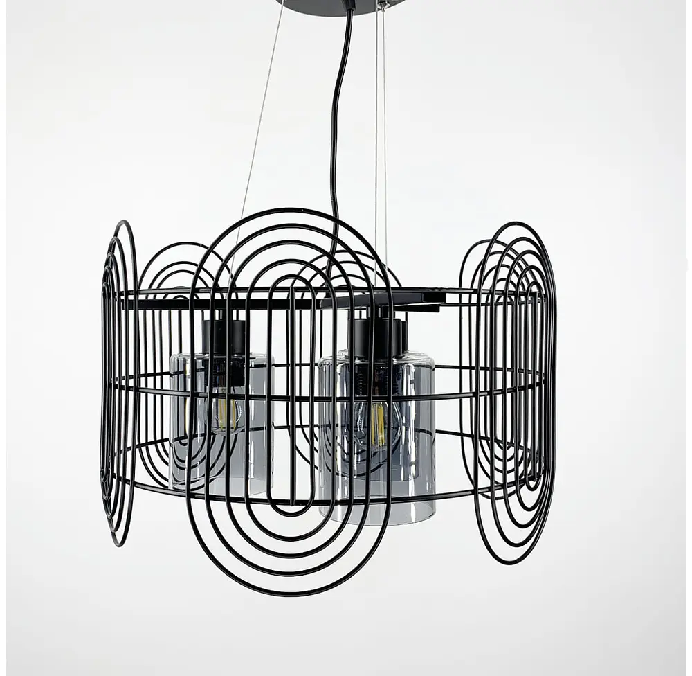 • Подвесная люстра в стиле лофт на 3 лампы в черном корпусе Line.F Цвет плафона Янтарный - миниатюра 4