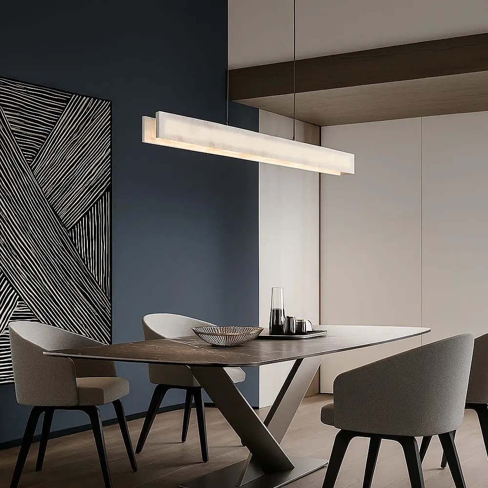 Изысканная и элегантная подвесная линейная люстра с мраморным эффектом станет не просто источником света, а настоящим украшением интерьера. Её продолговатый прямоугольный подвесной корпус из толстого матового акрила (шириной 10 см) с выразительными вкраплениями имитирует натуральный камень, а встроенные светодиоды с тремя режимами освещения (тёплый, нейтральный, холодный свет) создают роскошную игру света и фактуры. Во включённом состоянии люстра словно оживает - эффект камня становится глубоким и живым. Потолочное основание выполнено из металла цвета латунь, как и декоративные вставки по краям светильника, что добавляет изысканности. Модель доступна в трёх длинах - 100 см (24 Вт), 120 см и 150 см, что позволяет выбрать вариант под конкретное помещение. Высота подвеса регулируется до 170 см, поэтому люстра идеально подойдёт как для просторных залов, так и для современной кухни-столовой или коммерческих пространств. На фото видно, как нежно и равномерно рассеивается свет - этот светильник станет не только функциональным решением, но и арт-объектом в вашем пространстве. Количество источников света: 10 Тип помещения: Люстры для гостиной (в зал) Форма_изделия: Прямоугольная Серия: MJ363 Цвет основы: Латунь Материал плафона: Акрил Размер потолочной основы: 50х7х3,5 см Цветовая температура: 3000K,4500K,6500K Максимальная высота: 170 см Минимальная высота: 30 см Тип цоколя: LED-модуль Материал основы: Металллл Размер монтажной планки: 33 см Тип крепления: Монтажная планка Мощность (Вт): 24