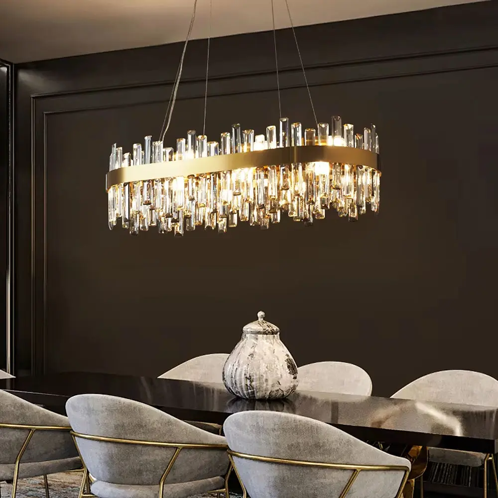 Подвесная люстра в латунном корпусе имеет уникальный дизайн с декоративными хрустальными камнями двух цветов, прозрачный и графит. Они крепятся к металлическому кольцу, создавая привлекательную и современную эстетику дизайна. Люстра оснащена встроенными светодиодами, имеющими три режима освещения. Высоту светильника можно регулировать от 30 до 90 см в зависимости от потребности помещения. Данная модель доступна в круглом кольцевом корпусе (в двух диаметрах: 60 см (мощность 86 Вт, в том числе 43 Вт в теплом и холодном режиме) и 80 см) и в удлиненном овальном корпусе (длиной 80х30 и 100х30 см). Эта люстра идеально подходит для гостиных, столовых или современных офисных помещений, придавая им стиль и функциональность. Тип цоколя: 30 Тип помещения: Люстры для гостиной (в зал) Форма_изделия: Овал Серия: MJ 210 Цвет основы: Латунь Размер потолочной основы: 23х10х4 см Цветовая температура: 3000K,4500K,6500K Максимальная высота: 90 см Минимальная высота: 35 см Материал основы: Металллл Цвет хрусталя: Прозрачный, Графит Размер монтажной планки: 15 см Тип крепления: Монтажная планка Мощность (Вт): 47 w w