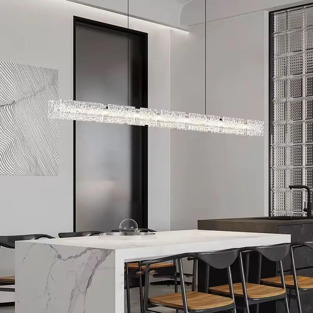 Серия подвесных люстр с «ледяным» корпусом — это невероятное сочетание современного дизайна и эстетической элегантности. Черный металлический корпус в сочетании с прозрачными акриловыми элементами напоминает тающие льдины, создавая эффект кристаллической легкости. Такой дизайн идеально подходит для пространств, где важна не только функциональность, но и художественный вид освещения. Эта серия представлена в двух формах: круглый кольцевой корпус - в 2-х диаметрах: 60 см и 80 см удлиненный прямой корпус - в 2-х длинах: 100 см и 120 см Такие варианты позволяют подобрать люстру под любой интерьер, от классики до современного минимализма. Высота каждой люстры регулируется, что дает возможность адаптировать ее к различным типам помещений. Она станет прекрасным акцентом в гостиной, спальне, столовой или в современных коммерческих помещениях (особенно ресторанах и отелях), придавая интерьеру стиль и изысканность. Мощность (Вт): 6 Тип помещения: Люстры для гостиной (в зал) Форма_изделия: Прямоугольник Серия: MJ371 Цвет основы: Черный Материал плафона: Акрил Размер потолочной основы: 40х6х2,5 см Цветовая температура: 3000–4500–6000К Максимальная высота: 80 см Минимальная высота: 25 см Материал основы: Металл Цвет хрусталя: Прозрачный Размер монтажной планки: 17,5 см Тип крепления: Монтажная планка
