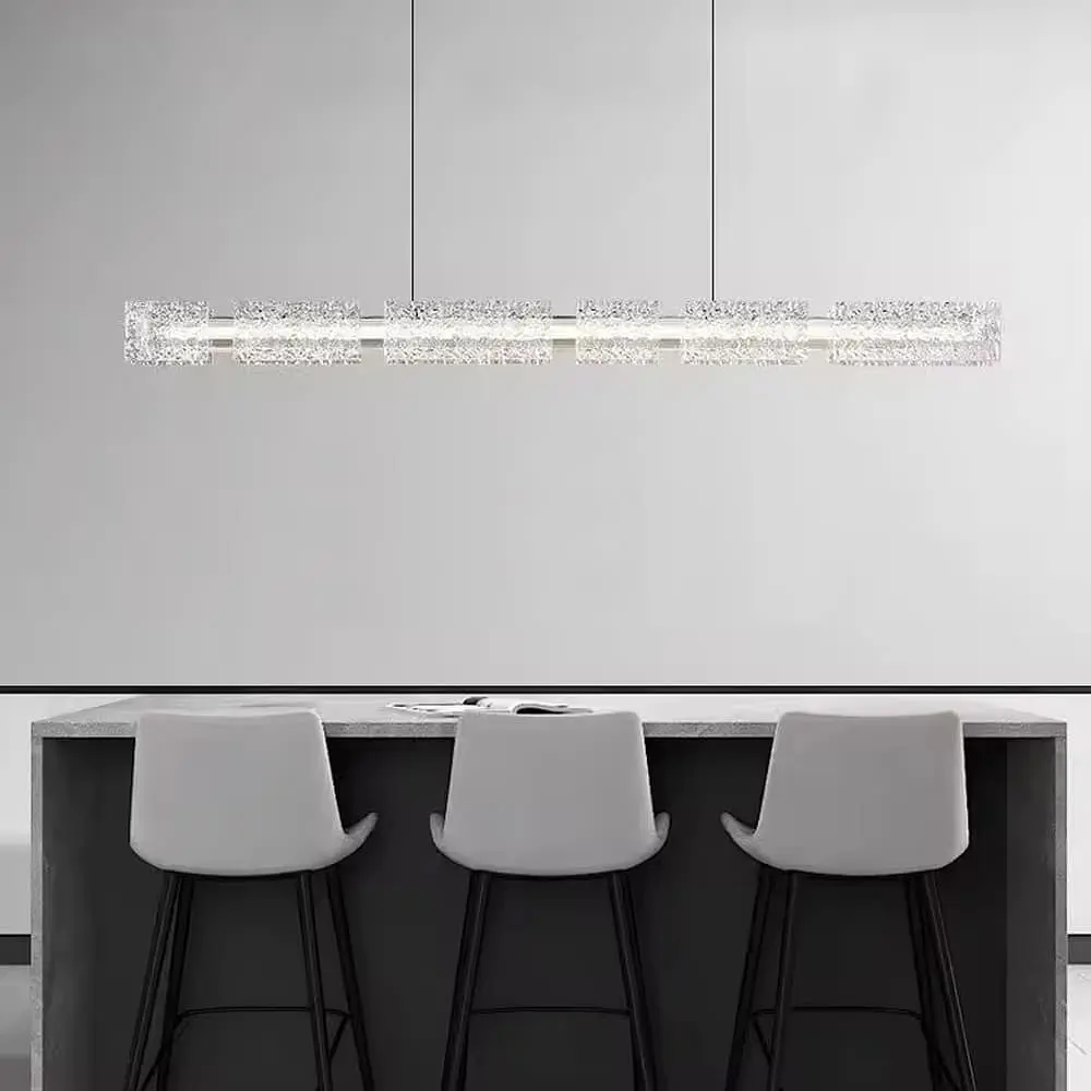 Подвесная удлиненная люстра с пластинами в виде прозрачных льдин 120 см Line F | Ст. MJ371-L1200 BK