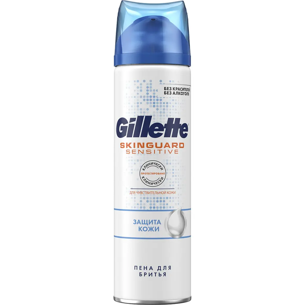 Пена для бритья Gillette Skinguard Sensitive Защита кожи охлаждает и смягчает кожу, способствует плавному скольжению бритвы и помогает защитить кожу во время бритья.