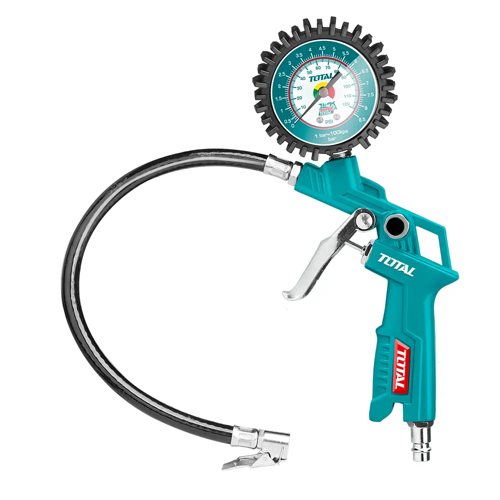 Пистолет для подкачки шин Total TAT11601 – это надежный пневматический инструмент, сочетающий в себе три функции: быстрая закачка колес, точное измерение текущего давления и сброс избыточного воздуха с помощью специального клапана. Такое устройство является базовым элементом оснастки для любого автовладельца, мастерской или шиномонтажного пункта.