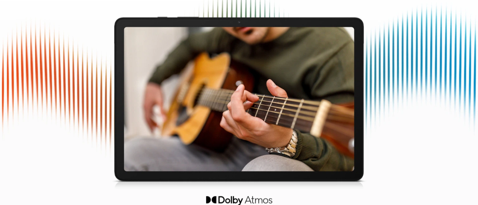 Погрузитесь в насыщенное звуковое пространство благодаря динамикам, создающим объемный звук. Независимо от того, наслаждаетесь ли вы музыкой или просматриваете фильм, Galaxy Tab A9+ позволяет полностью погрузиться в 3D-звук с потрясающей чистотой и глубиной звучания.
